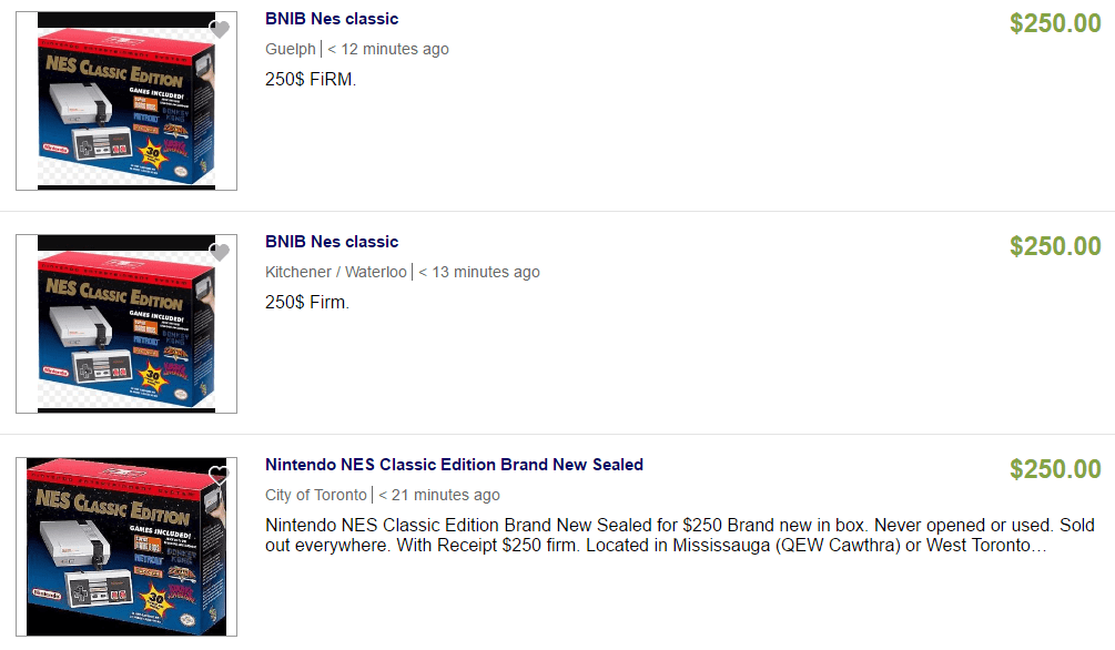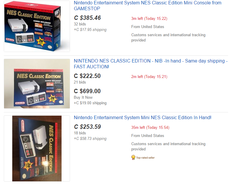 Now I know what you’re thinking, nobody is dumb enough to cough up all that money just to play a few retro games, right? Wrong. Just a quick Ebay search and you will find NES Classic Editions being added to auction every minute, and the sad part of all this is people are actually bidding top dollar for these consoles. Here are just a few examples of the crazy amounts people are willing to spend: